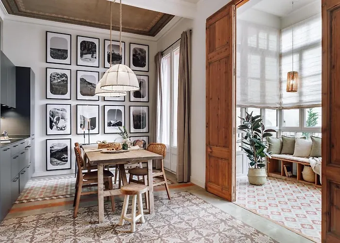 The spacious 90 m² Tella - 2 Bedrooms And Office In Eixample Esquerra Barcelona apartment provides easy access to various city attractions, such as the Ido Balear sculpture, situated merely a 5-minute walk away.